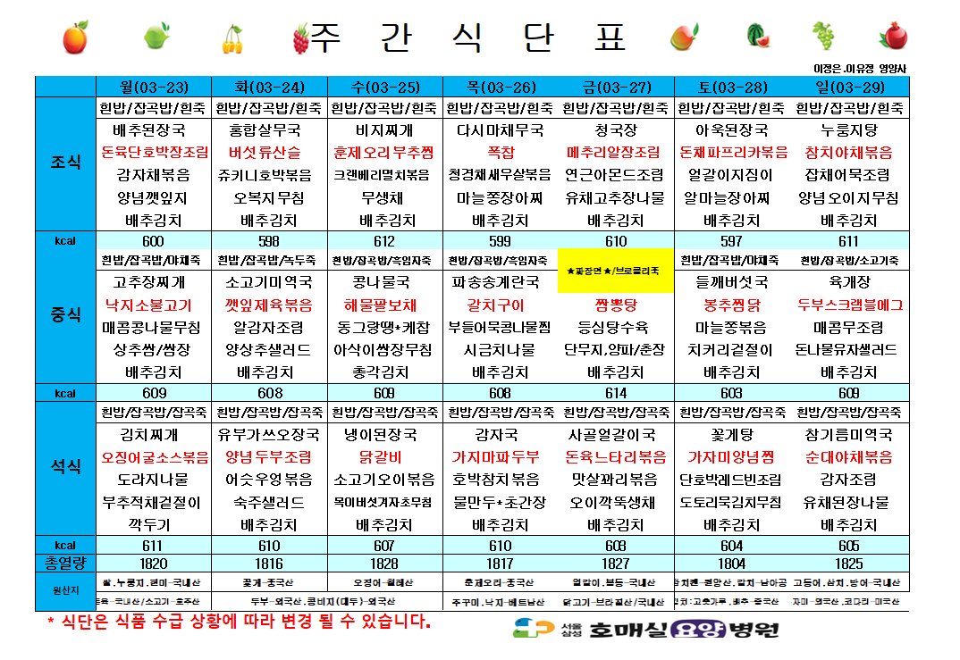 다음글 3월 셋째주 식단표
